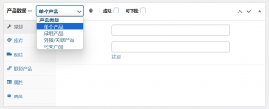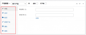 选择产品类型后,继续在产品数据部分填写数据参数。这个时候要用到左侧的选项卡,每个选项卡都有不同的选项可供你配置。